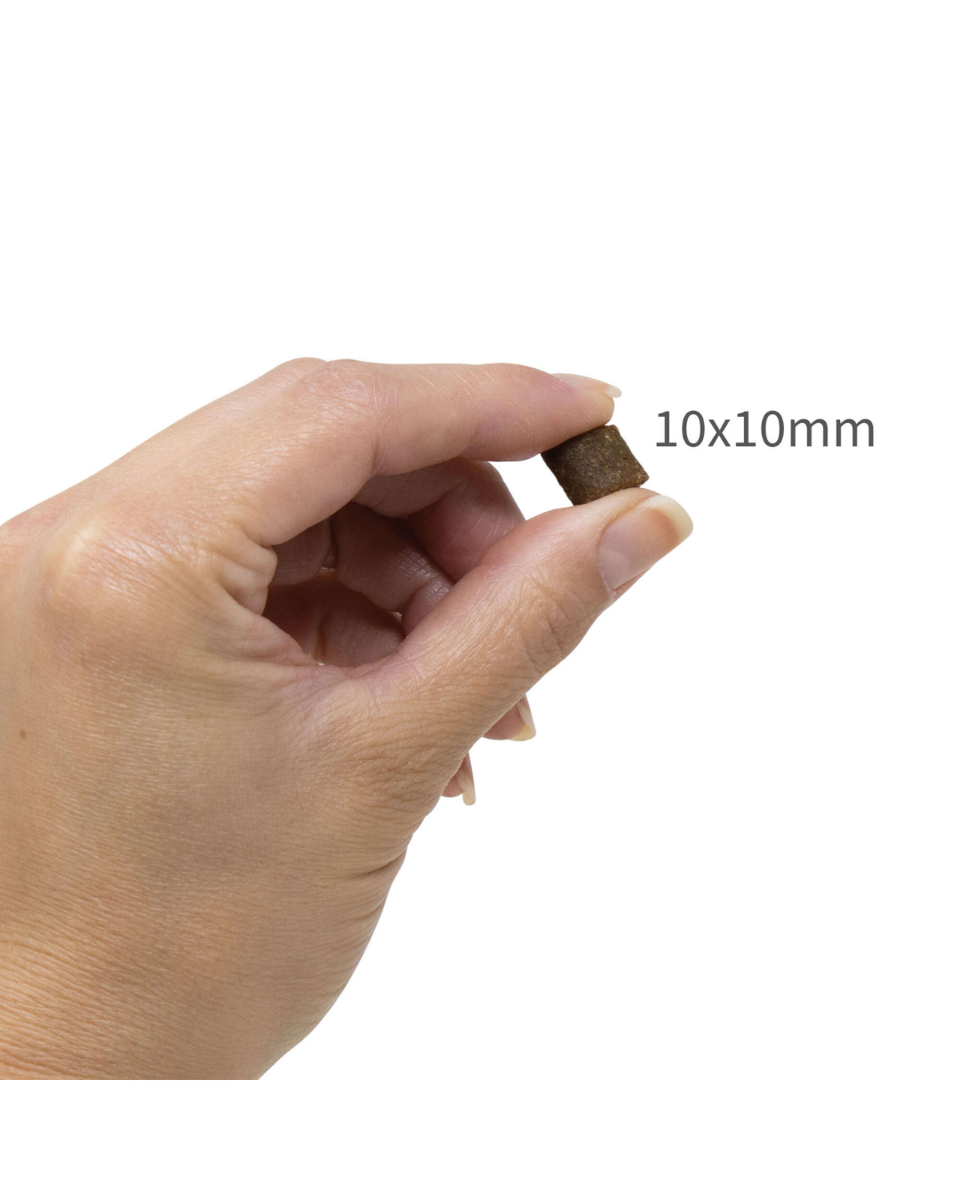 Esta ração combina três ingredientes de origem animal com um excelente perfil proteico e uma melhor proporção de gorduras saudáveis , como os ácidos graxos poli-insaturados (EPA e DHA). Estes são essenciais, especialmente durante a fase de desenvolvimento do filhote, influenciando diretamente o comportamento e as funções relacionadas ao crescimento .